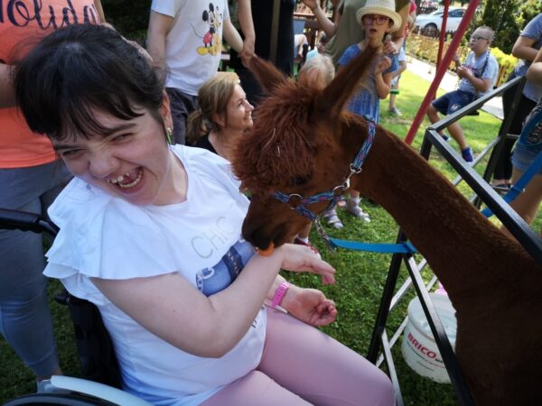 W ubiegłym tygodniu, podczas kolejnego spotkania w ramach projektu odwiedziły nas alpaki. Są to zwierzęta hodowlane, bardzo łagodne. W trakcie alpakoterapii nasi wychowankowie otrzymali wiele informacji na ich temat. Mogli je karmić, głaskać i wyprowadzać na spacer, co pozytywnie wpływa na rozwój sfery emocjonalnej i poznawczej. Tak bliskie obcowanie z alpakami sprawiło im wiele radości.
