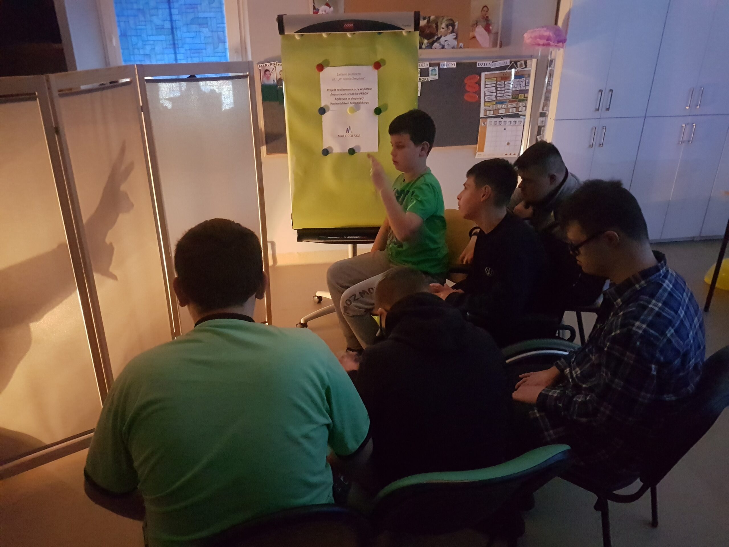 Za nami kolejne spotkanie z cyklu “W Krainie Zmysłów”, realizowane przy wsparciu finansowym środków PFRON będących do dyspozycji Województwa Małopolskiego. Uczestnicy mogli poznać światło w różnych formach i odsłonach. Najbardziej aktywną częścią był teatr cieni w którym można było pobudzić wyobraźnię i myśli twórcze. +24