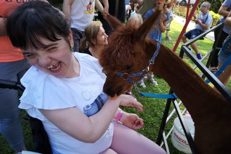 W ubiegłym tygodniu, podczas kolejnego spotkania w ramach projektu odwiedziły nas alpaki. Są to zwierzęta hodowlane, bardzo łagodne. W trakcie alpakoterapii nasi wychowankowie otrzymali wiele informacji na ich temat. Mogli je karmić, głaskać i wyprowadzać na spacer, co pozytywnie wpływa na rozwój sfery emocjonalnej i poznawczej. Tak bliskie obcowanie z alpakami sprawiło im wiele radości.